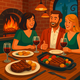 * Peter kan nu genieten van het diner met zijn vrienden bij Al Punto Cáceres - Steak House & Bar!