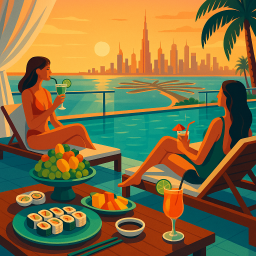* Peter kan nu genieten van het diner met zijn vrienden bij AURA SKYPOOL Dubai دبي!