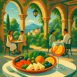 * Peter kan nu genieten van het diner met zijn vrienden bij Bar & Chiostro Taormina!