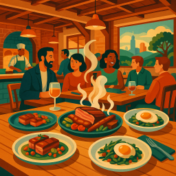 * Peter kan nu genieten van het diner met zijn vrienden bij Barley Swine Austin!