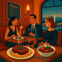 * Peter kan nu genieten van het diner met zijn vrienden bij Bistrot du Bœuf Rouge Genève!