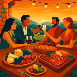 * Peter kan nu genieten van het diner met zijn vrienden bij Bluemont Vineyard!