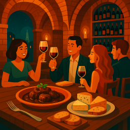* Peter kan nu genieten van het diner met zijn vrienden bij Bodega de los Secretos Madrid!