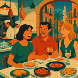 * Peter kan nu genieten van het diner met zijn vrienden bij Cal Pep Barcelona!