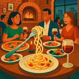 * Peter kan nu genieten van het diner met zijn vrienden bij Carbonara Arlington!