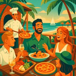 * Peter kan nu genieten van het diner met zijn vrienden bij Casa Nonna Aruba Noord!