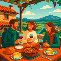 * Peter kan nu genieten van het diner met zijn vrienden bij Chalet Rural Mirador A La Ribera!