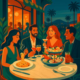 * Peter kan nu genieten van het diner met zijn vrienden bij Chez Mia West Hollywood!
