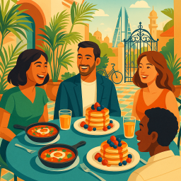 Stel, Peter heeft een geweldige ochtend en besluit zijn drie vrienden mee te nemen naar Coco's Manama om 18:00 uur diezelfde dag.