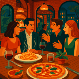 * Peter kan nu genieten van het diner met zijn vrienden bij Comune Columbus!