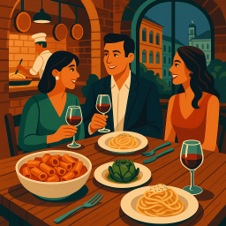 * Peter kan nu genieten van het diner met zijn vrienden bij FELICE A TESTACCIO MILANO!