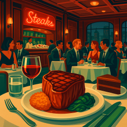 * Peter kan nu genieten van het diner met zijn vrienden bij Gibsons Bar & Steakhouse Rosemont!