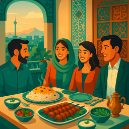 * Peter kan nu genieten van het diner met zijn vrienden bij Gilaneh Restaurant Tehran!