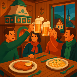 * Peter kan nu genieten van het diner met zijn vrienden bij Goldener Stern Friedberg!