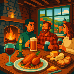 * Peter kan nu genieten van het diner met zijn vrienden bij Hen of the Wood Waterbury Village Historic District!