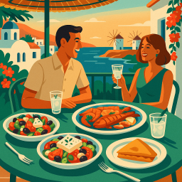 * Peter kan nu genieten van het diner met zijn vrienden bij Hermes Mykonos Hotel Mikonos!