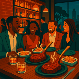 * Peter kan nu genieten van het diner met zijn vrienden bij J Carver Austin!