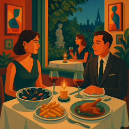 * Peter kan nu genieten van het diner met zijn vrienden bij La Colombe D'or Forest!