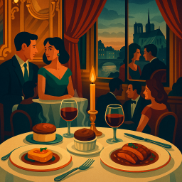 Faux romantic First impressions are superlative and decor exquisite; a masterclass in Pariseinne Romance. Intricate maze of rooms, theatrical sense of occasion. Seated at a table with spun table cloth with a single illuminated candle. Then the moo