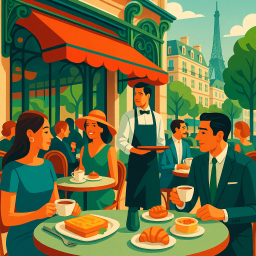 Stel, Peter heeft een geweldige ochtend en besluit zijn drie vrienden mee te nemen naar Le Grand Café Paris om 18:00 uur diezelfde dag.