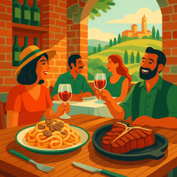 * Peter kan nu genieten van het diner met zijn vrienden bij Locanda Pinocchio San Miniato!