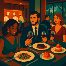 * Peter kan nu genieten van het diner met zijn vrienden bij Manresa Los Gatos!