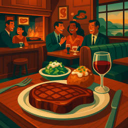 We recently had dinner at this Steakhouse for a Wounded Warrior event, it was fantastic! Service was very excellent, speedy not to mention attentive! Deserts and serving sizes large ! The restaurant was clean and Ambiance nice