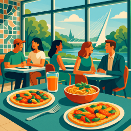 Stel, Peter heeft een geweldige ochtend en besluit zijn drie vrienden mee te nemen naar Mosaic Restaurant Redding om 18:00 uur diezelfde dag.