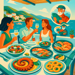 * Peter kan nu genieten van het diner met zijn vrienden bij Mylos By The Sea Agia Marina!