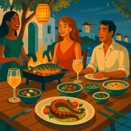 * Peter kan nu genieten van het diner met zijn vrienden bij Nōema Mykonos Mikonos!