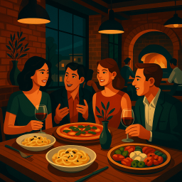 Stel, Peter heeft een geweldige ochtend en besluit zijn drie vrienden mee te nemen naar North Italia Leawood om 18:00 uur diezelfde dag.
