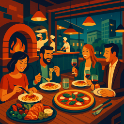 Stel, Peter heeft een geweldige ochtend en besluit zijn drie vrienden mee te nemen naar Oggi Stuttgart om 18:00 uur diezelfde dag.
