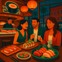 Great sushi and atmosphere. Didn’t have reservations, so had to sit at bar. We arrived at peak dinner hour and food took 45 minutes. A family of 4 sat down 40 minutes after us and got food within minutes. Which was disappointing, especially on a Tu