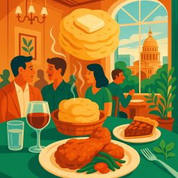 * Peter kan nu genieten van het diner met zijn vrienden bij Olamaie Austin!