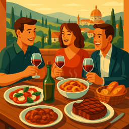 * Peter kan nu genieten van het diner met zijn vrienden bij Podere 39 Firenze!