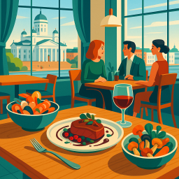 * Peter kan nu genieten van het diner met zijn vrienden bij Restaurant Olo Helsinki!