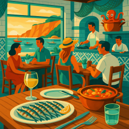 * Peter kan nu genieten van het diner met zijn vrienden bij Taberna d'Adelia Nazaré!