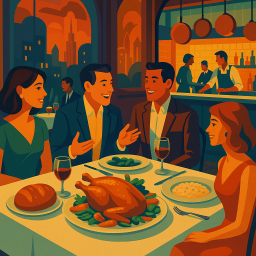* Peter kan nu genieten van het diner met zijn vrienden bij TAILLEUR RESTAURANT Kansas City!