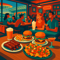 The food here used to be exactly what you expected. Reasonable quality, very tasty, overpriced American comfort food. That is why I liked it. Unfortunately, the quality has gone downhill. The food isn't fresh anymore. No idea if the routines or staff