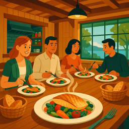 * Peter kan nu genieten van het diner met zijn vrienden bij The Cooks’ House Traverse City!
