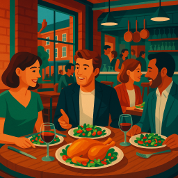 * Peter kan nu genieten van het diner met zijn vrienden bij The Hart - Marylebone London!