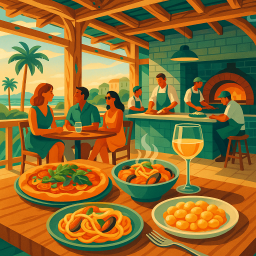 We got seats at the bar for our lunch. Shared pizza and crab. Very friendly staff and guests. Gelato downstairs is a must.