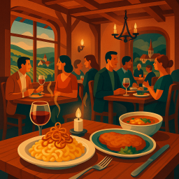 * Peter kan nu genieten van het diner met zijn vrienden bij Traube Hanweiler Hotel Winnenden!
