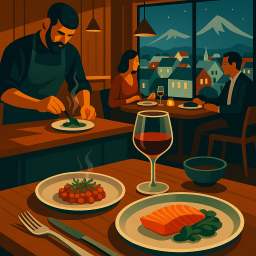 * Peter kan nu genieten van het diner met zijn vrienden bij ÓX Reykjavík!